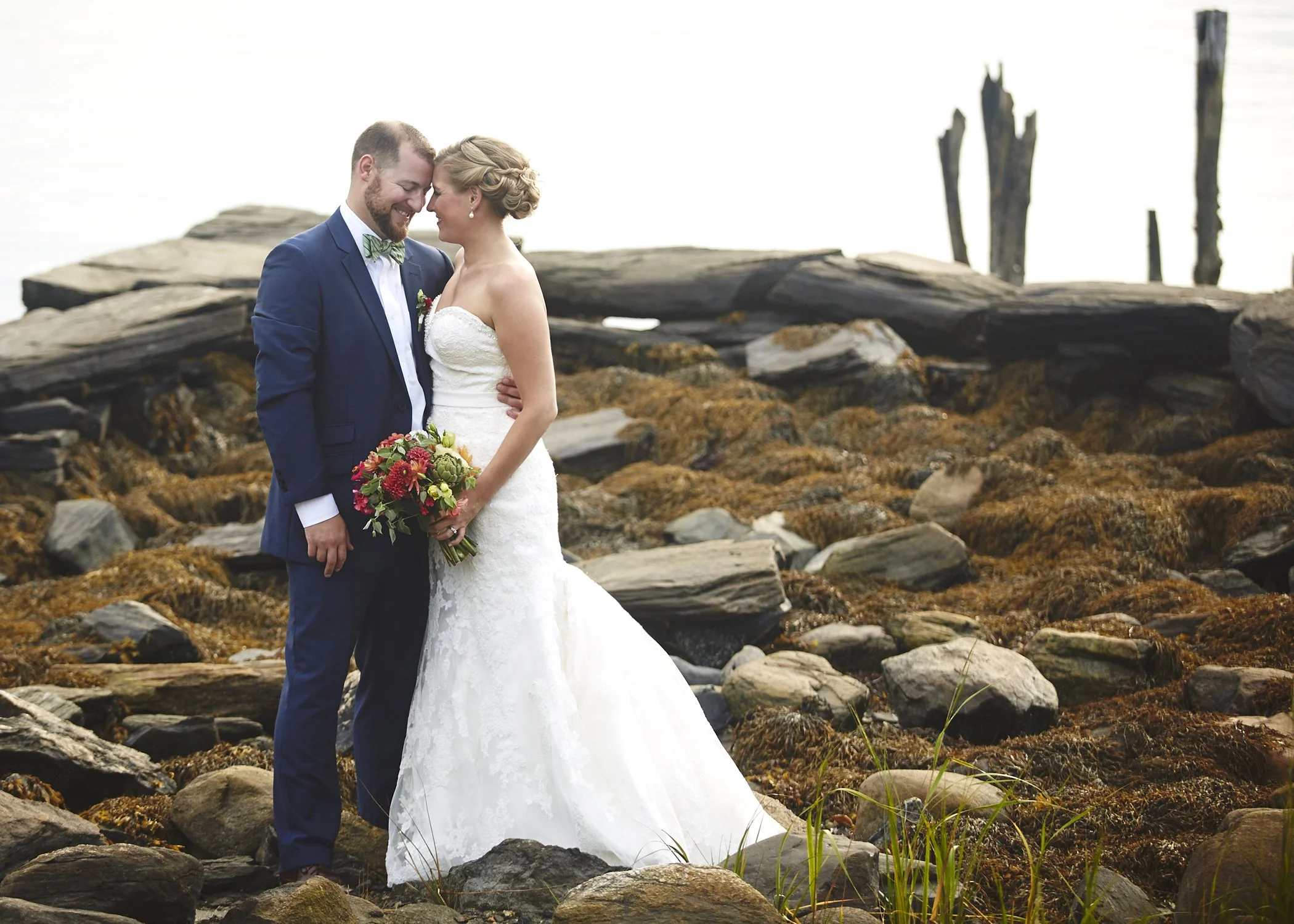 In early September I traveled to Maine to attend Kristen & Ian's cottage chic wedding on Peak's Island off the coast. It was a beautiful Maine inspired wedding that even a downpour at the time of the ceremony could not ruin. The island itself was a unique place and perfect setting for seaside nuptials. After meeting in college and seven years of being together the two tied the knot surrounded by friends, family, lobsters, and the beautiful coastal main scenery.